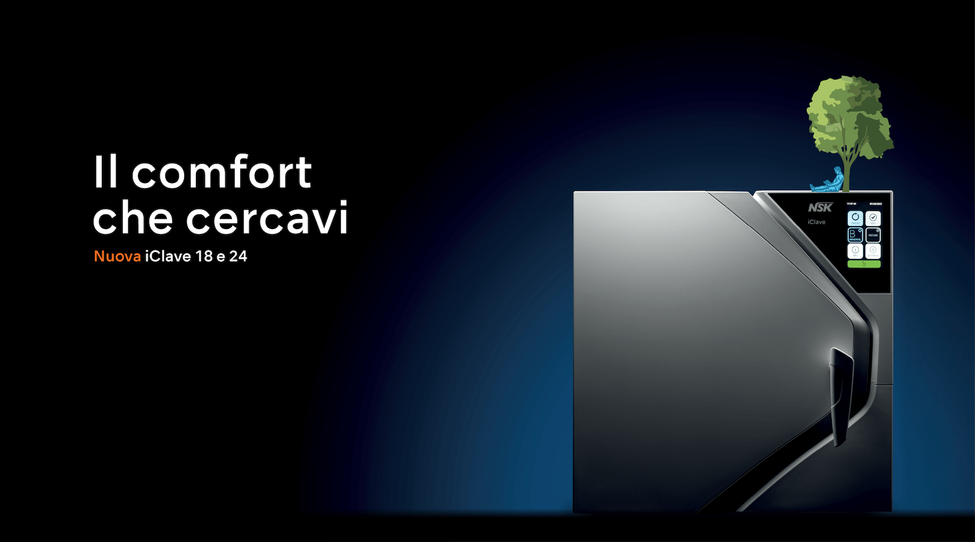 Ma c’è di più. Il suo intuitivo touchscreen a colori, il design elegante ed ergonomico e la tecnologia all’avanguardia fanno di iClave 18 e 24 un dispositivo sicuro, efficiente e anche piacevole da utilizzare. La qualità e l’affidabilità inconfondibili di NSK garantiscono una sterilizzazione perfetta, rendendo iClave 18 e 24 la risposta efficace e confortevole alle tue esigenze.