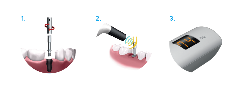 Osseo 100 misura la stabilità dell'impianto e l'osteointegrazione al fine di ottimizzare la decisione relativa a quando caricare l'impianto. Particolarmente importante in caso di utilizzo di protocolli che prevedono trattamenti a tempo limitato e in caso di trattamento di pazienti ad alto rischio. La semplice procedura di misurazione dell'ISQ consente di pianificare in anticipo il periodo di carico dell'impianto. La ricostruzione di corone e ponti può essere valutata per ottimizzare i tempi e ridurre il rischio di problemi. Le misurazioni possono essere effettuate senza impatti non necessari, poiché l'apparecchiatura non entra in contatto fisico con l'impianto o l'abutment.